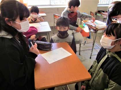 役割を分担して、卒業を祝う会の準備を進める5年生。