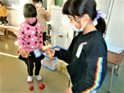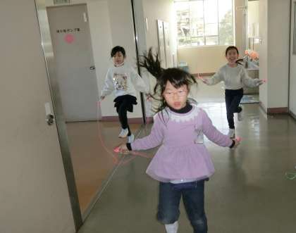 朝の1年生。なわとび、けん玉・・・、朝から、やる気満々です。