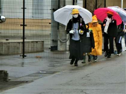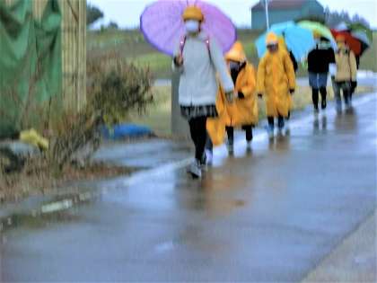 一時、雨脚が強くなりましたが、今朝も、見守り隊の皆様のおかげで無事登校できました。