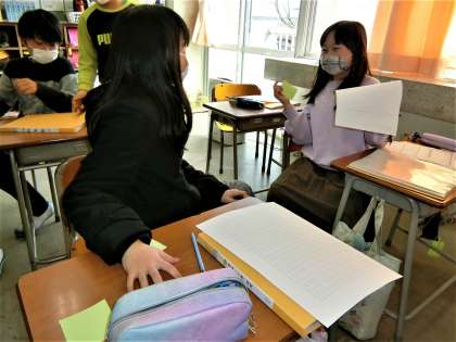 友達と話し合いながら、楽しげに準備を進めています。