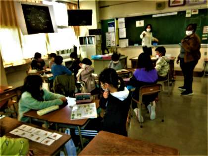 今日は、英語専科教員とALTの来校日。ALTの発音に合わせて、英語らしい発音を心がけました。