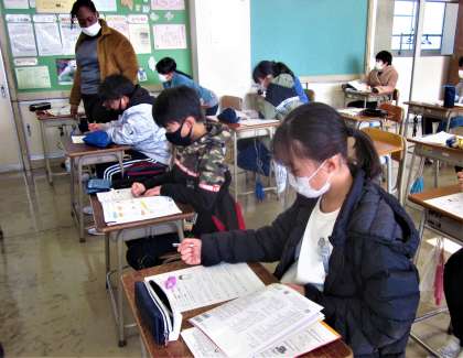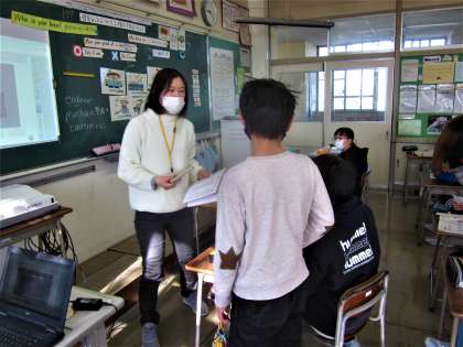 5年生。外国語科の学習。5年生は、英語の発音が上手です。