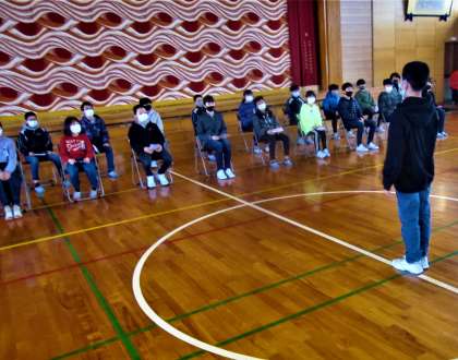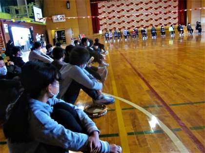 卒業を祝う会スタート。プログラムと児童代表のお祝いの言葉です。