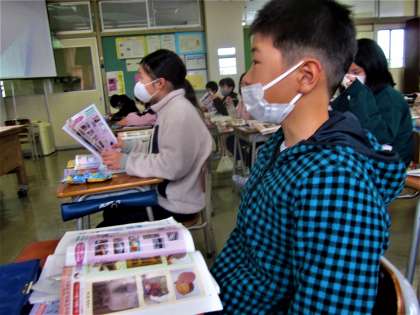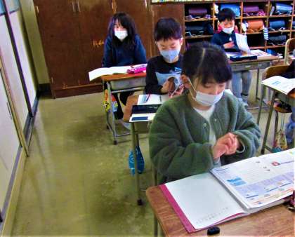 社会科の学習。わらぐつ、ランプ、火鉢・・・昔の道具とその使い方について学ぶ3年生。