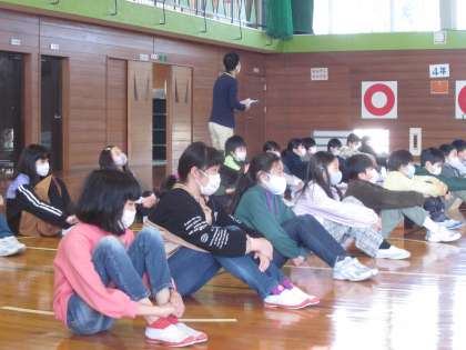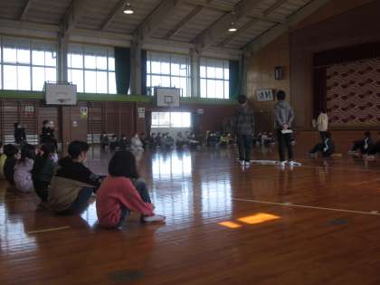 体育館での児童会引継式の様子。4年生は来年度から委員会の一員です。