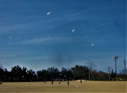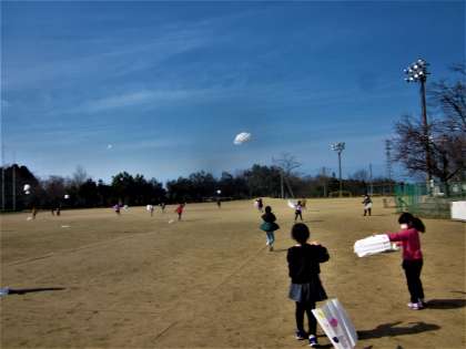空の青さが目にしみる5時間目。1年生も凧も満足そうでした。