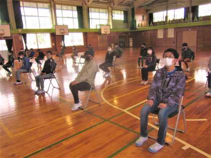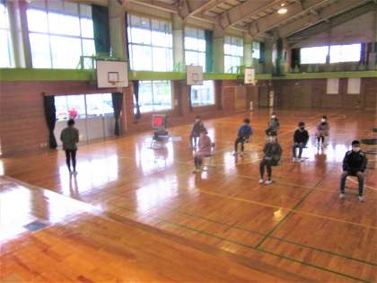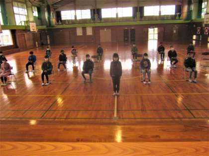 6年生は、朝、体育館で卒業証書の受け取り方について共通理解しました。