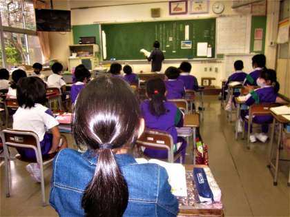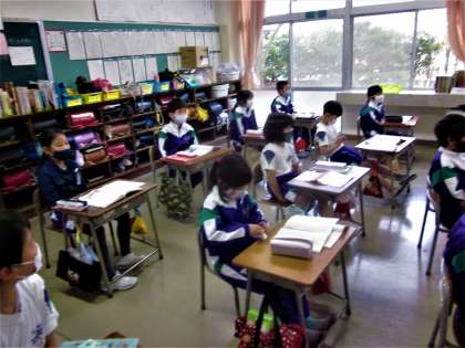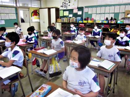友達の考えや感想に耳を傾け、自分のものと比べています。