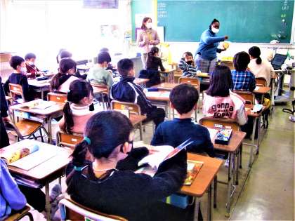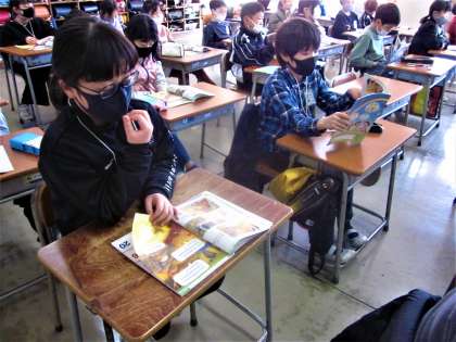 今日は、英語専科教員とALTの来校日。3年生は、英語独特の発音を聞き取りながら、口の形に気を配ってリピートしていました。