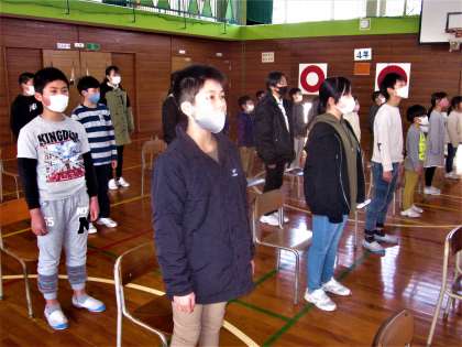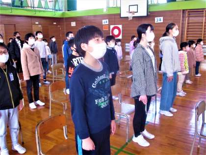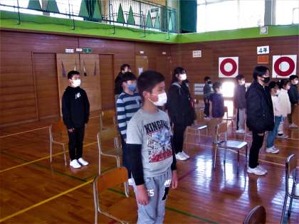 卒業式の練習に臨む5年生。在校生の代表らしい立派な態度です。