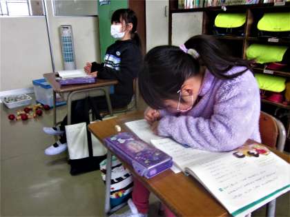 「どんなことがあったかな?」と、これまでの出来事を思い出そうとする1年生。中には、「全部、忘れた。」という声も・・・。