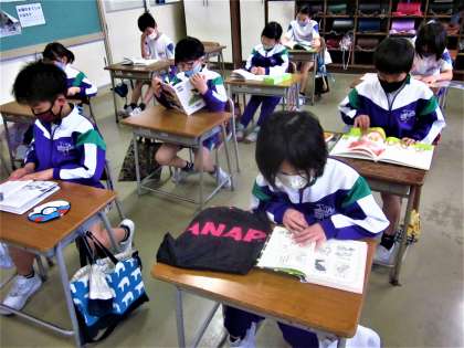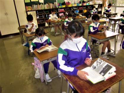 朝の会を終え、読書タイムに入りました。教室は、とても静かです。