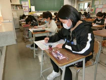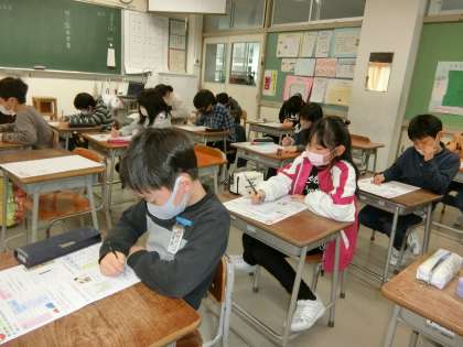 算数科で学んだ「ぼうグラフ」のテストに挑む3年生。