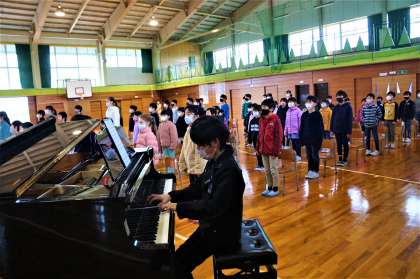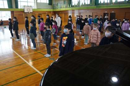 体育館で卒業式予行を実施。6年生も、他の学年の児童も、よくがんばりました。