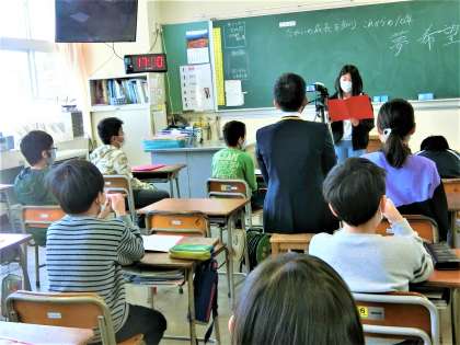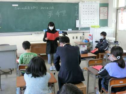 4年生教室。10歳を記念して、家族への思いなどを語りました。
