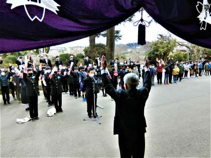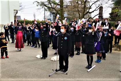 盛大に万歳三唱。卒業生から職員への感謝のメッセージをいただきました。門出の会は、とても内容の濃いものでした。