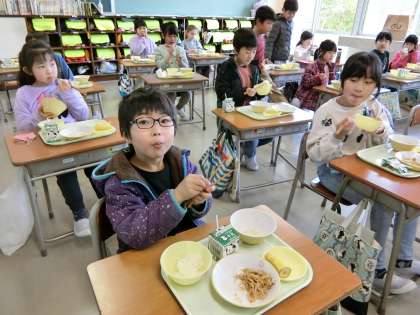 令和2年度給食最終日。おいしくて栄養バランスのとれた給食。ごちそうさまでした。