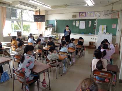 昨日よりも落ち着いた感じの朝の会。さすが2年生、という思いです。