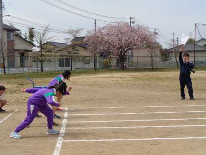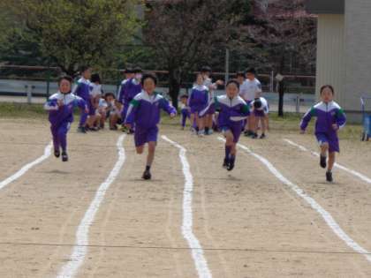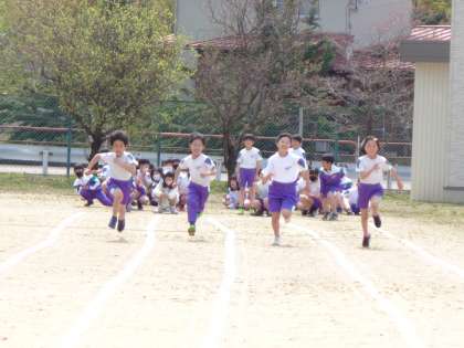 よい天気。4年生と一緒に思いっきり走りました。