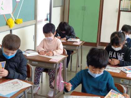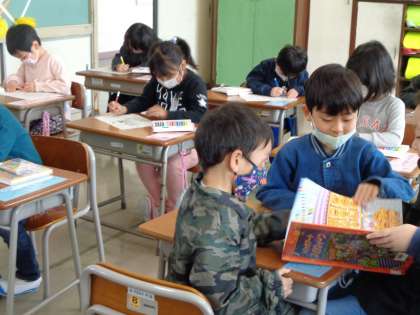 ぐんぐんタイム。一人で集中して描くのも、友達と一緒に読むのも楽しい。