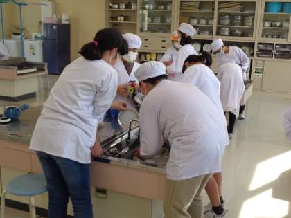 家庭科の学習のイントロダクションとして、お茶を入れる体験に取り組みました。家庭科室の道具や設備にはどんな物があるか、どのように使うのかを確かめつつ楽しく活動できたようです。