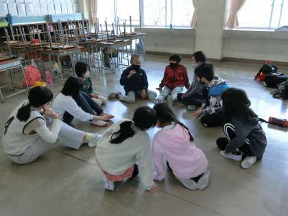 班ごとに今日の活動を振り返りました。班のみんなとの仲が深まったことや、協力してクイズを解くことができて嬉しかったこと等を伝え合いました。