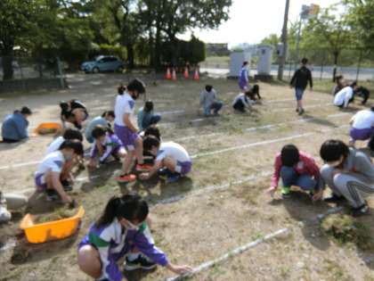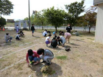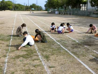 放送で参加を呼びかけたところ、多く子供たちがグラウンドへ出てきくれました。参加してくれたみなさん、ありがとう!