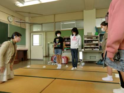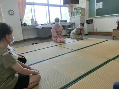 ボランティアで指導に来てくださっている先生方から、立ち方や座り方、お菓子の取り方等、丁寧に教えていただきました。