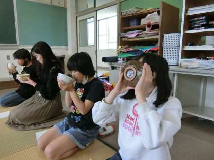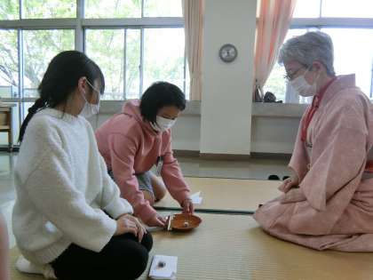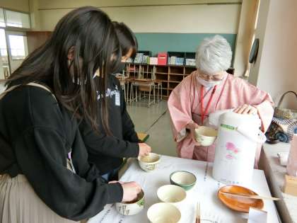 先生の手先をよく見て、茶筅の動かし方をしっかりと学んでいました。