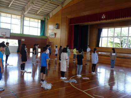 体育館に行くと、6年生が宿泊学習の打ち合わせをしていました。