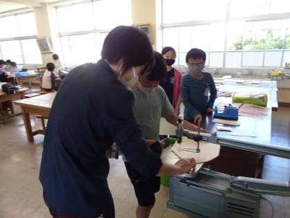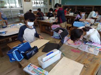 1枚の板から、思い思いのデザインに切り出して、オリジナルの伝言板をつくっています。デザインする、色を塗る、切り出す、の様々な行程で各自の工夫が光っています。