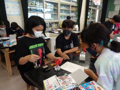 ある操作によって、モーターの動きの向きが反対になることを実験キットを使って探っています。今日の授業もとてもよい学び合いが生まれていました。