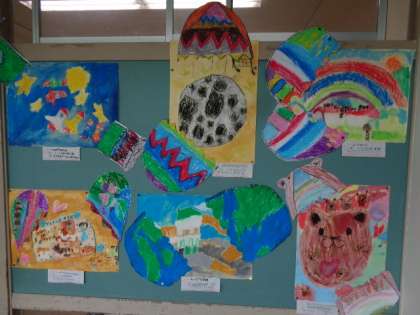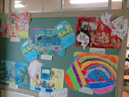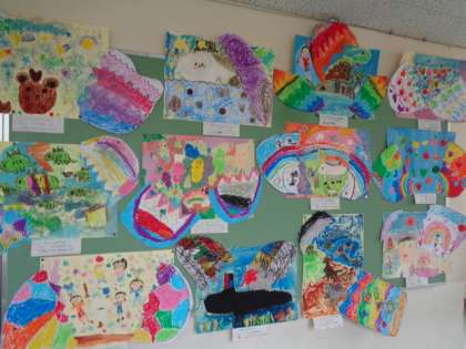 個性的な作品揃いです。廊下を眺めながら歩くと、気分がうきうきしてきます。
