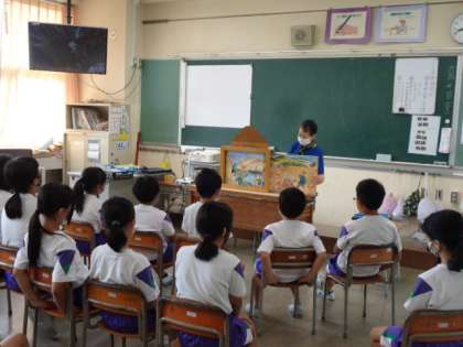 おはなしの会「夢」の皆さまが、3、4年生に紙芝居を披露してくださいました。どちらも長岡校区の昔にまつわるお話です。とても興味深く見入っていました。