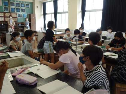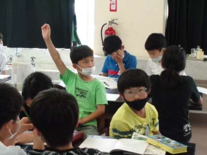 理科「トンボやバッタを育てよう」の学習の様子です。
