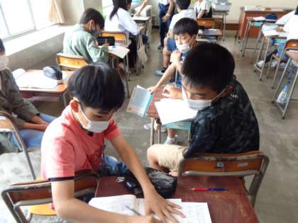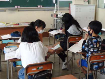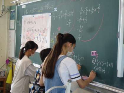 算数科「分数のかけ算を考えよう」の学習の様子です。