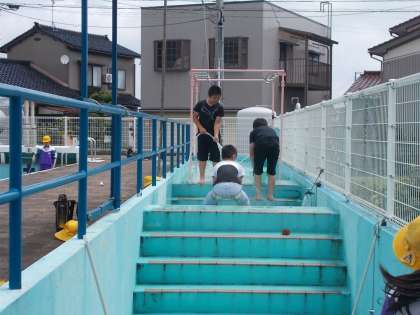 来週のプール開きに向けて、5・6年生がプールの清掃をしてくれました。全校のみんなが気持ちよく水泳ができるようにと一生懸命に取り組む姿が素敵でした。