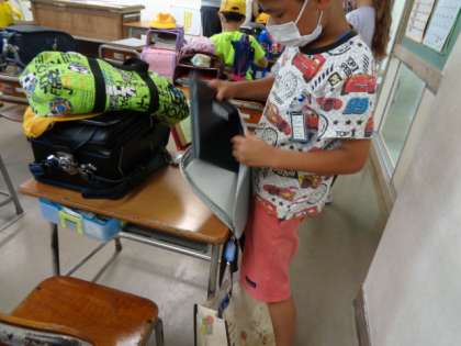 2年生は、今日初めてchromebookを持ち帰りました。ちょっとドキドキしながら、ランドセルの中にていねいにしまっていました。