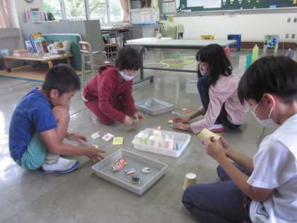 お友達を招待して「ハッピーにこにこ集会」を開きました。一緒に、輪投げの応援をしたり、手作りおもちゃの遊び方を工夫したりして仲良く過ごしました。「楽しかったよ」という一言がとてもうれしく、また集会を開きたい気持ちが高まりました。