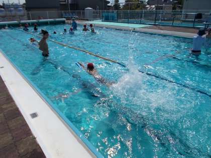 指導者をお招きし、水泳の指導をしてもらいました。小学校生活最後の夏。少しでも技能がアップするとよいですね。
