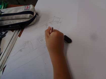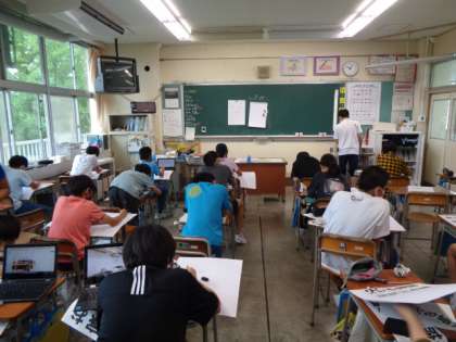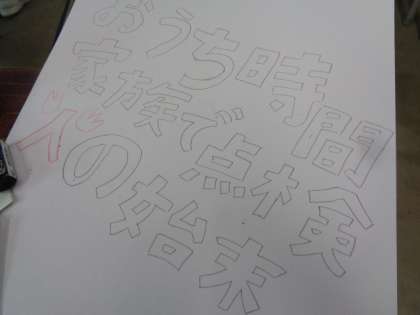 防火ポスターの制作に向けて、防火の標語を配置しています。どのようなフォントで、どのように配置すると効果的に見えるか、知恵を絞っています。