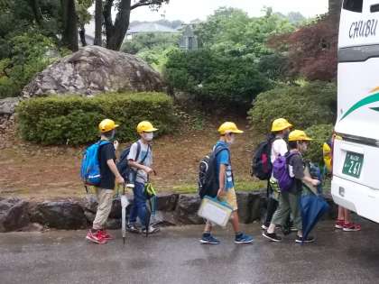 あいにくの雨にも負けず、元気いっぱいに出発しました。