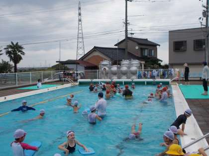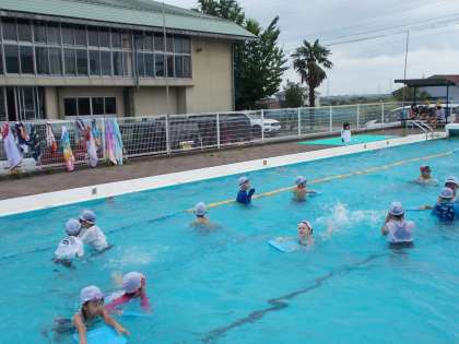 5年生と一緒に水泳学習をしました。水しぶきを上げて、みんなとても楽しそうにしていました。