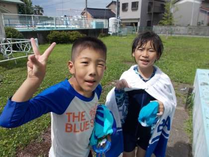久しぶりの水泳学習。「楽しかった〜!」と満足した様子でした。