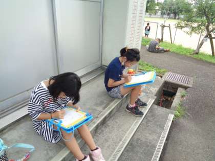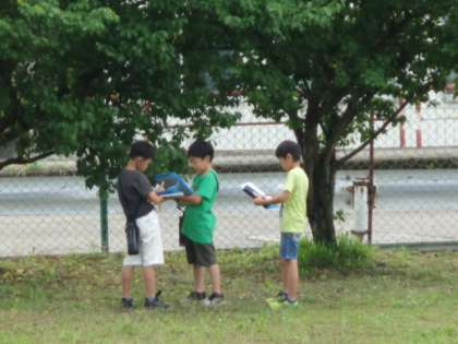 春に観察した樹木の変化を調べていました。3か月の変化の大きさに驚いている子が多かったようです。