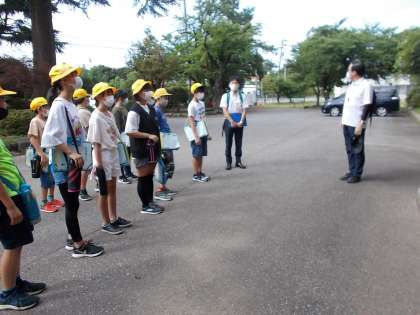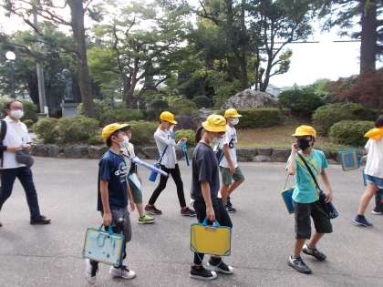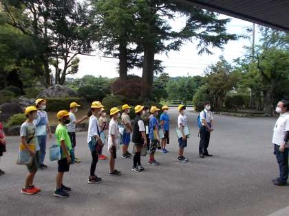 県埋蔵文化財センターに向けて出発。子供たちは、勾玉づくりが楽しみなのだそうです。