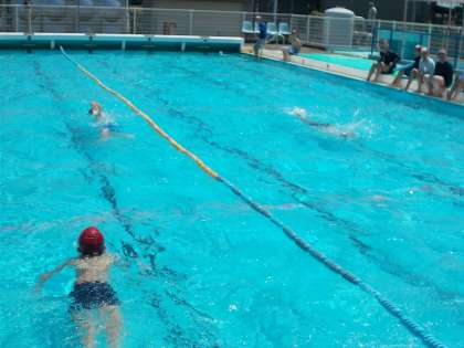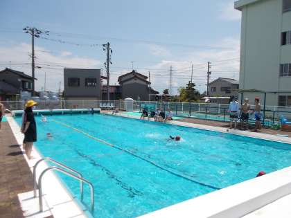 今日の水泳学習では、始めに、技能別に分かれて練習をしました。その後、レーンに入り、記録を計りました。自分の今の力を知り、水泳学習のまとめとして行う記録測定に向けての目当てを確かめました。
