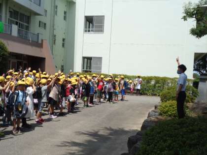 今日も30度を超える中での下校となりました。でも、子供たちはいつもより早い下校時刻にウキウキしていたようです。元気に下校していきました。