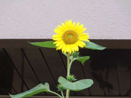1枚目 以前このHPでも紹介した、市の保護司会の皆さまが展示してくださっているヒマワリが開花しました。