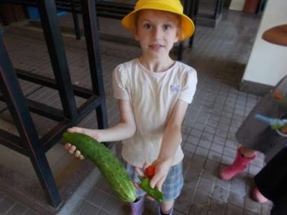 岡童農園の肥沃な土と、2年生の愛情たっぷりのお世話のおかげで、今日もたくさんの野菜が収穫できました。